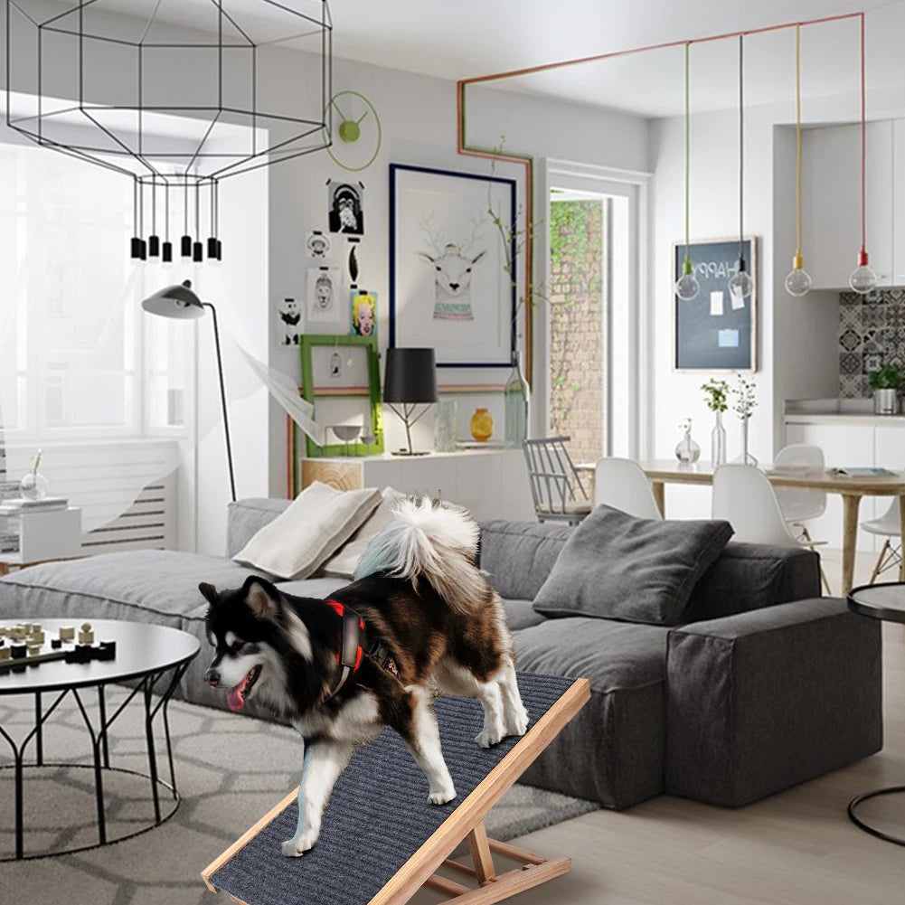 Dog Ramp Pet Wooden Ramp with Adjustable Height Folding Portable Ramp with Anti-Skid and Wear-Resistant Horizontal Slope Surface